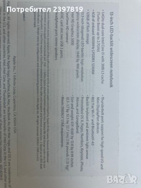 Makbook air 13 inch кутия. Нова → Обява 46217478