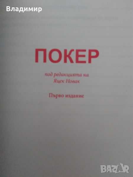 Продавам комплект книжка "Покер", под редакцията на Яцек Новак, първо издание и тесте карти,неразпечатано. Цена 20 лева.