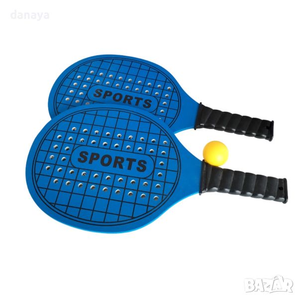 Комплект от 2 броя ракети за плажен тенис + топче. Хилките са изработени от MDF материал. Чудесно лятно забавление на плажа!