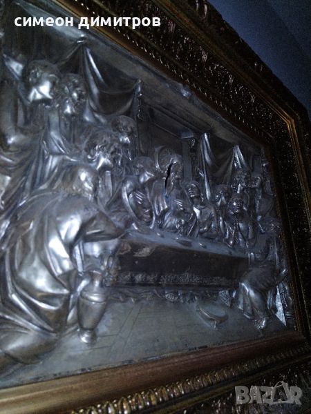 Голяма сребърна релефна картина скулптора Тайната вечеря изработена 1588 година Италия 12 кг → Обява 46219297