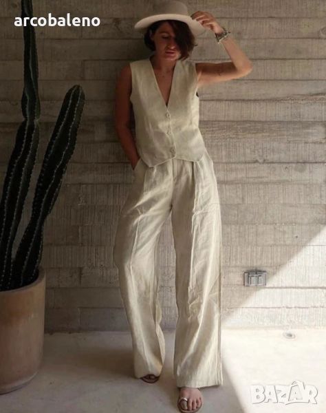 Останете готини и стилни в нашия нов ежедневен и модерен комплект от две части без ръкави и панталон. Изработено със смес от 95% памук и 5% лен, това облекло излъчва спокоен чар, идеален за всеки повод. С модерен силует и разнообразен модел, този комплект е задължителен за хората, които са напред в модата.