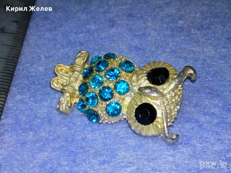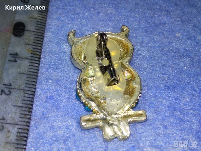 ФИГУРАЛНА ВИНТИДЖ АРТ КРИСТАЛНА БРОШКА БУХАЛЧЕ от БЛАГОРОДНА СТОМАНА 45614