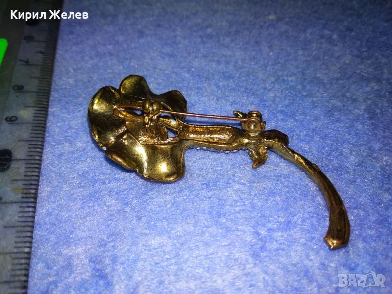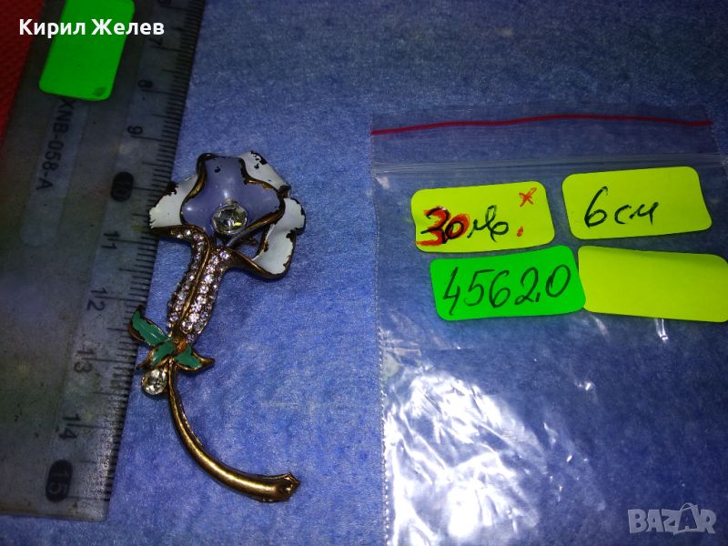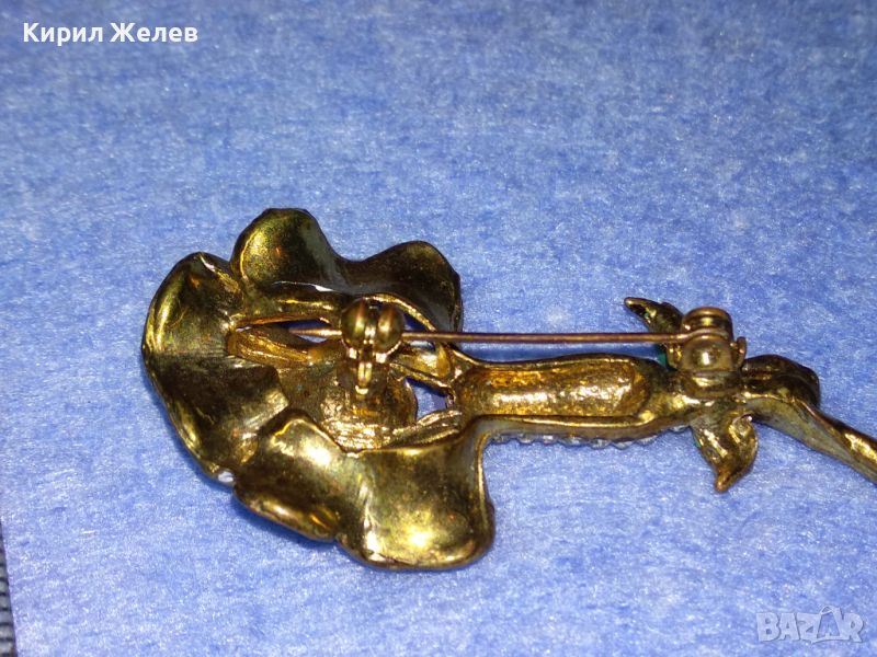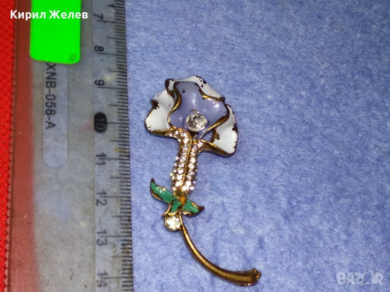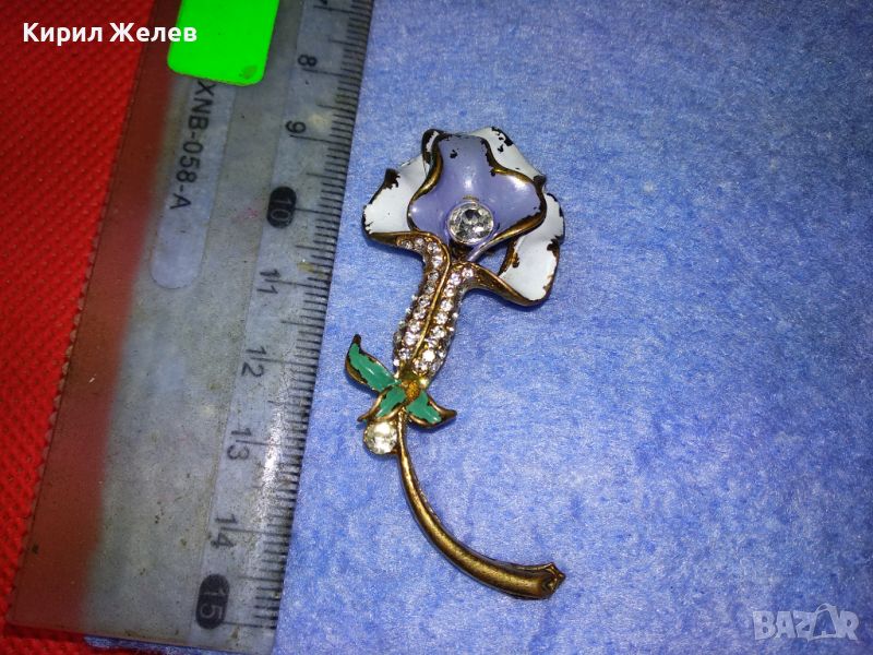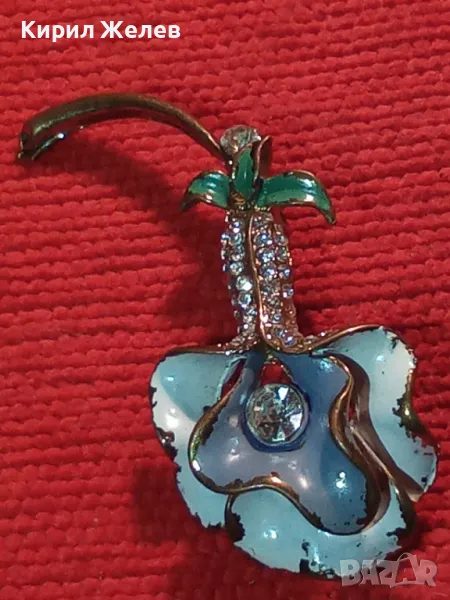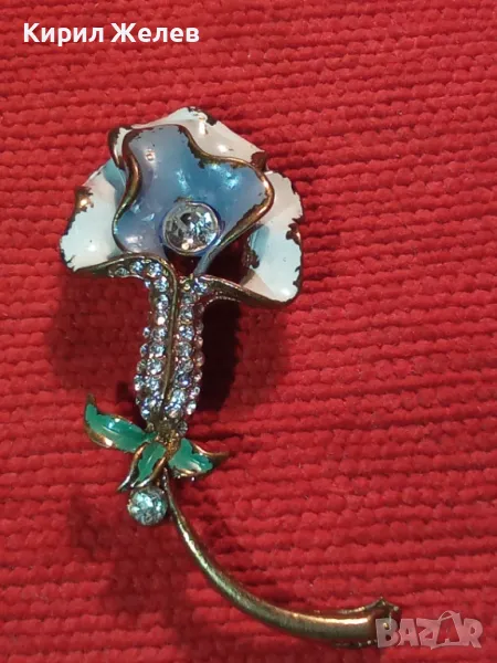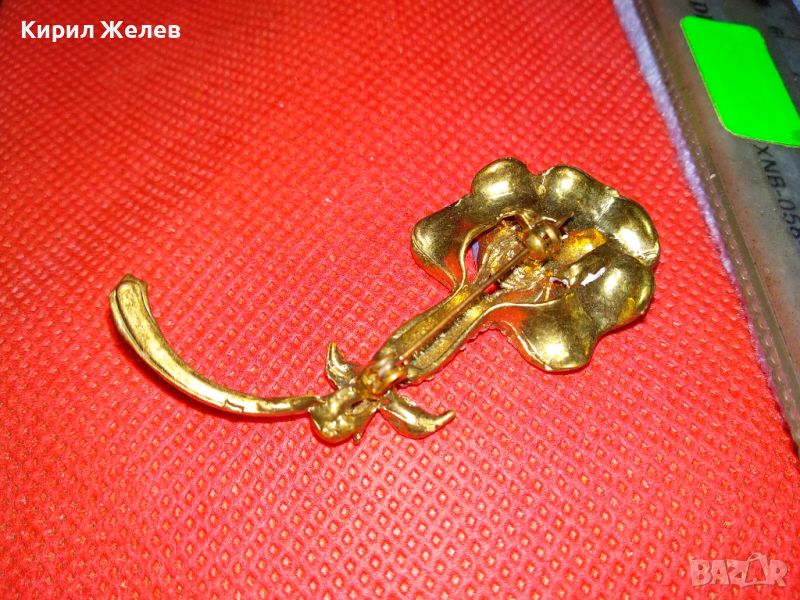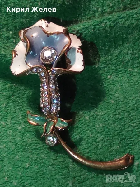 СТАРА ФЛОРАЛНА ЕМАЛИРАНА с ПОЗЛАТА МЕДНА БРОШКА ЦВЕТЕ с ИСКРЯЩИ ФАСЕТИРАНИ ЦИРКОНИ 45620
