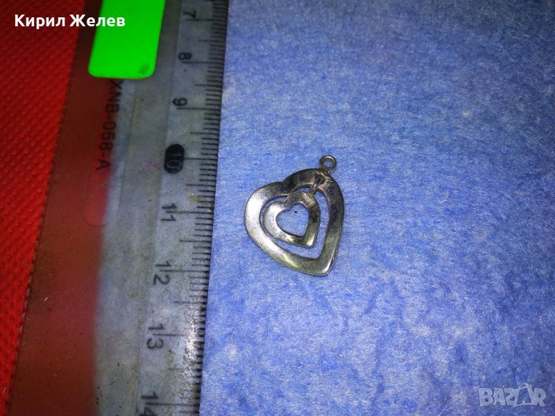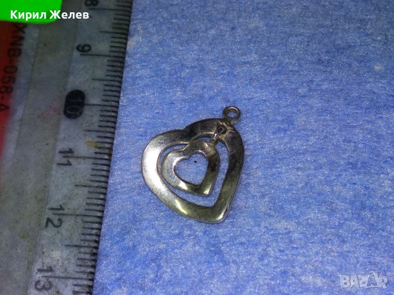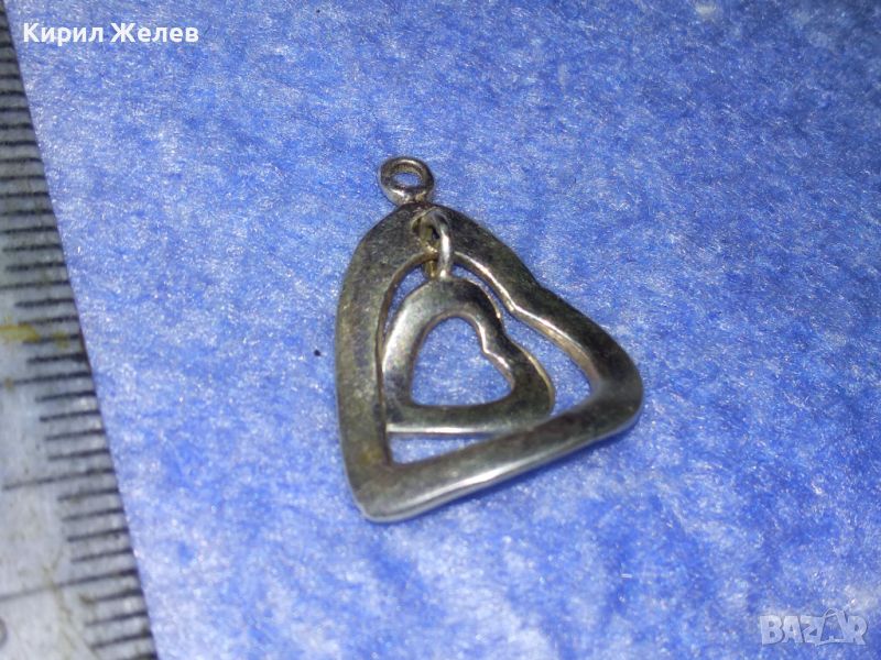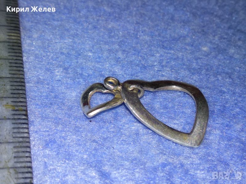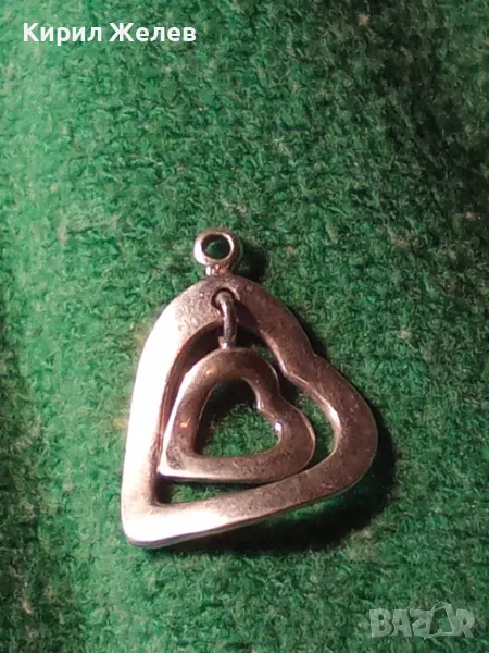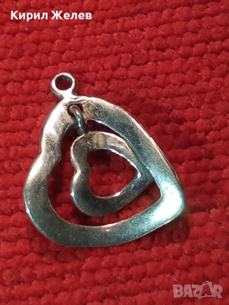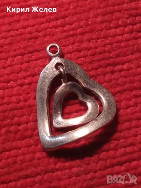 ДВЕ СЪРЦА в ЕДНО РОМАНТИЧЕН СРЕБЪРЕН МЕДАЛЬОН ВИНТИДЖ АРТ ПЕНДАНТ СРЕБРО 45732