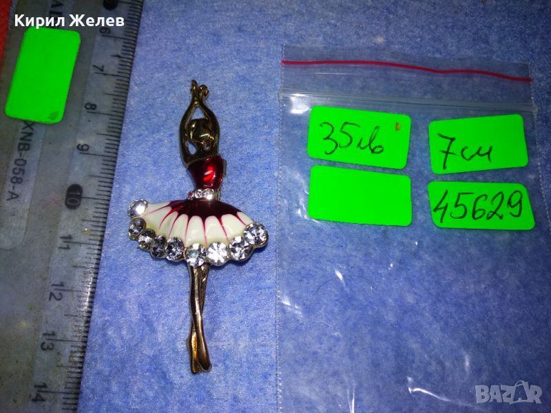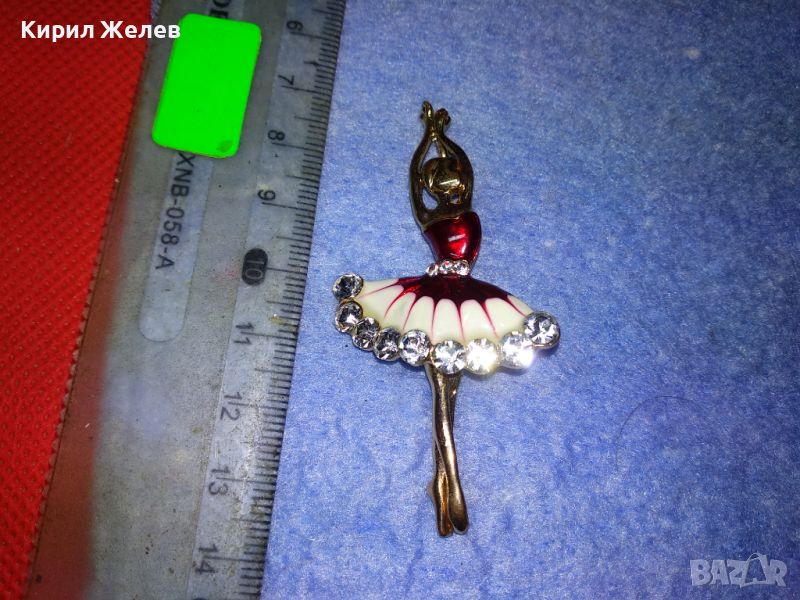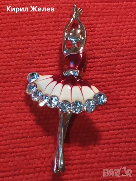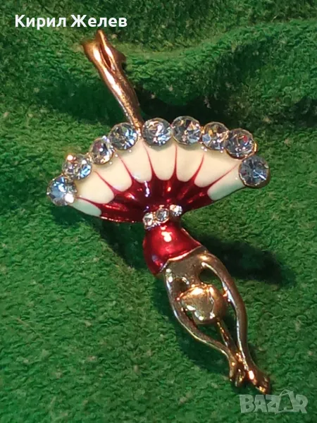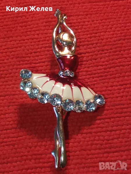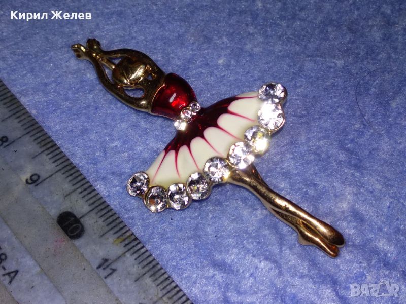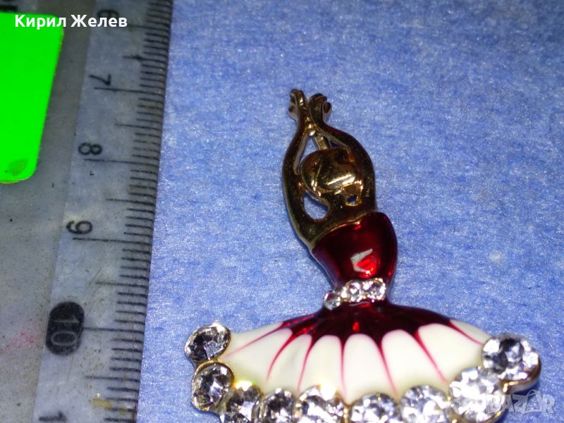 РЕТРО БИЖУ ПОЗЛАТЕНА ЕМАЙЛИРАНА БРОШКА БАЛЕРИНА с БЛЕСТЯЩИ ФАСЕТИРАНИ БОХЕМСКИ КРИСТАЛИ 45629
