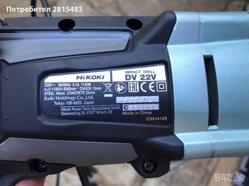 Ударна бормашина (с куфар) HiKOKI HITACHI DV22V 1120W, I-0-1100, II-0-3000об., 74Nm → Обява 46225552