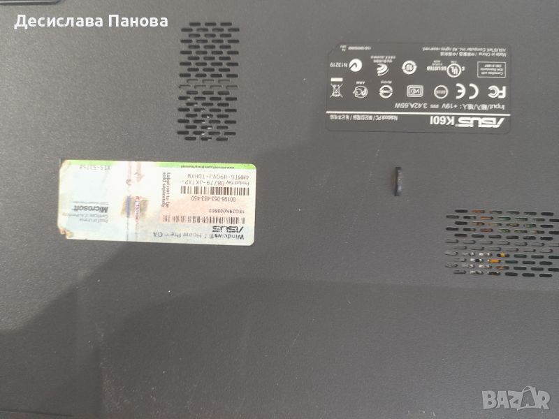 Лаптоп ASUS Pentium(R') Dual-Core CPU подходящ за бизнес и образованиеПРОЦЕСОРPentium(R') Dual-Core CPU (Т4400/2.2GHz)Инсталирана памет (RAM) 4,00 ГБ64-битова операционна системаВИДЕО КАРТАintel ICH9ЕКРАН16 инчов (40,64 см) HDПАМЕТ:Локален диск С: 58,4 GBЛокален диск D: 204 GBЛокален диск E: 203 GBРаботи безупречно!Забележката е че батерията не държи. Но работи без проблем с поставено постоянно зарядно в мрежата.Има инсталиран Windows 7 Professional.Продаваме го защото е слаб за работа с 3D програми за проектиране, които са нужни за работата ни.