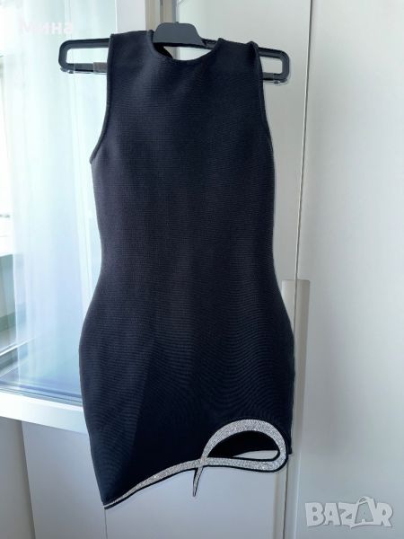 Бандажна рокля с камъчета, страхотно оформя тялото и не прозира. Размер М по етикет, но отговаря на С.