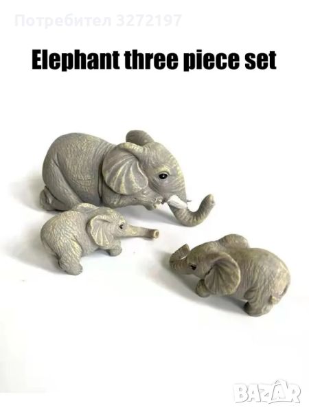 Комплект 3 бр. ръчно рисувани фигурки на слончета от полирезин