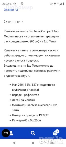 Капакът за лампа Exo Terra Compact Top Medium пасва на стъклените терариуми със среден размер (60 см) на Exo Terra.