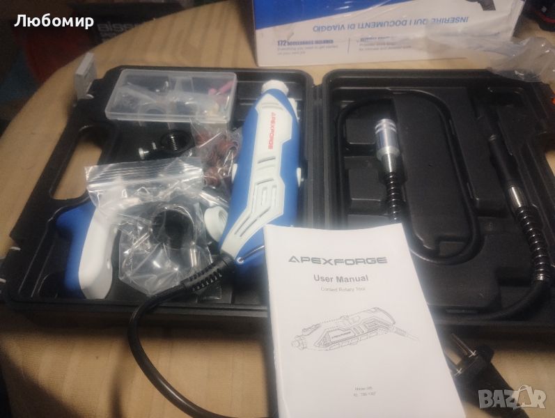 Комплект въртящи се инструменти с променлива скорост APEXFORGE M6, безключов патронник и гъвкав вал, 172 части, 6-скоростни аксесоари, 4 аксесоара и куфар за носене за занаятчийски проекти, творения „направи си сам“, рязане/гравиранеПо време на употреба избягвайте огъване на гъвкавия вал. Работният ъгъл на гъвкавия вал не трябва да бъде по-малък или равен на 45°, в противен случай гъвкавият вал ще се нагрее и повреди.M6 е оборудван с 3-челюстен безключов патронник, който може да фиксира аксесоари без използване на гаечен ключ, можете лесно да замените аксесоари от 1/64" до 1/8" стеблоБЕЗКЛЮЧОВ ПАТОННИК: Този безключов патронник с 3 челюсти ви позволява да сменяте принадлежностите на въртящите се инструменти APEXFORGE бързо и лесно, без да използвате цанги или гаечни ключове.Висока гъвкавост с 4 аксесоара: гъвкавият вал подобрява гъвкавостта на продукта, прави вашия прецизен проект по-лесен и по-удобен; Защитен предпазител осигурява защита при извършване на рязане и шлифоване; Подробното захващане ви позволява да се съсредоточите върху прецизното издълбаване, шлифоване и гравиране и осигурява повече стабилност; Водачът за рязане е подходящ за рязане с различна дълбочина и поддържа добра перспектива и стабилност.6 скорости (10 000-35 000 RPM) и вентилация: 135 W мотор осигурява мощна мощност за рязане, шлайфане, гравиране, пробиване, почистване/полиране и т.н.; Диапазонът на променлива скорост от 10 000 до 35 000 RPM ви позволява гъвкаво да регулирате скоростта на въртене. 6 променливи скорости, осигурява прецизен контрол на въртящия се инструмент. Големите вентилационни отвори разсейват топлината с течение на времето, което позволява на въртящия се инструмент да работи дълго време.