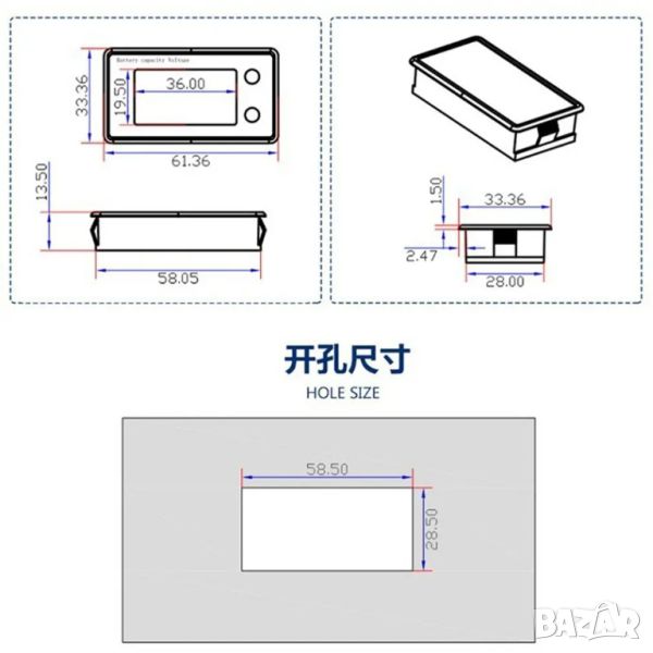 2. P. Оловно-киселинна батерия, обхват на измерване от DC 12V до 24V, 36V, 48V, 60V, 72V. С функция за памет при изключване