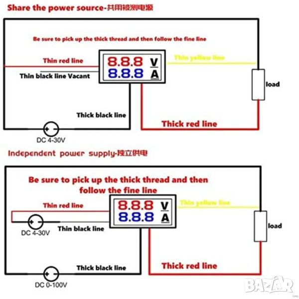 Работно напрежение: DC 4 ~ 30V; Измерване на напрежение: DC 0 ~ 100V; Минимална резолюция (V): 0.1V