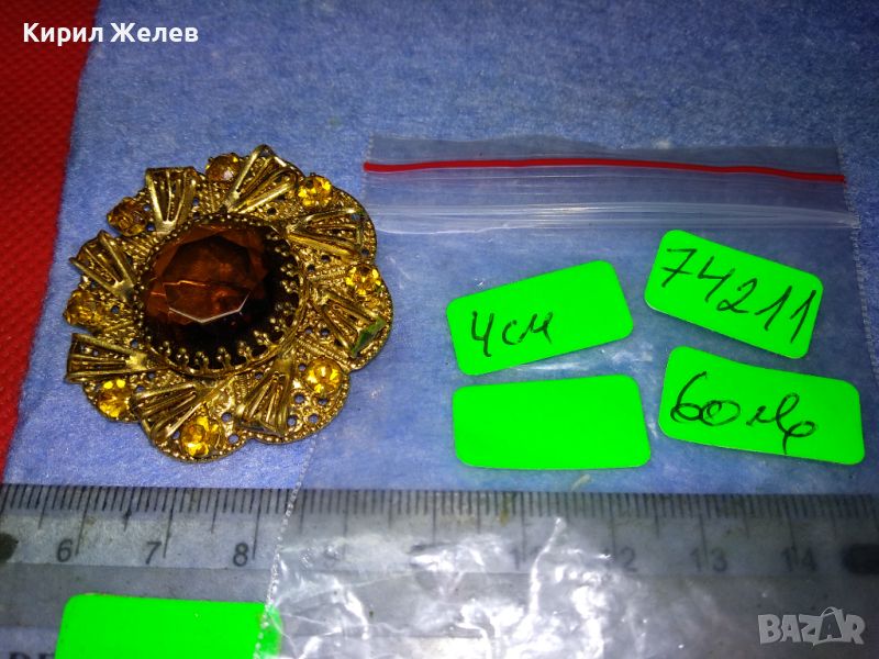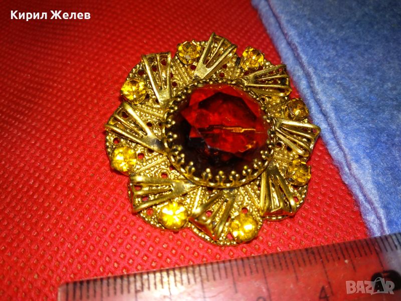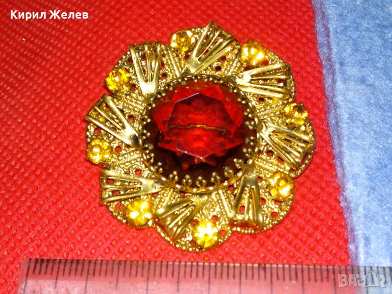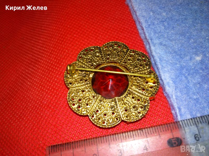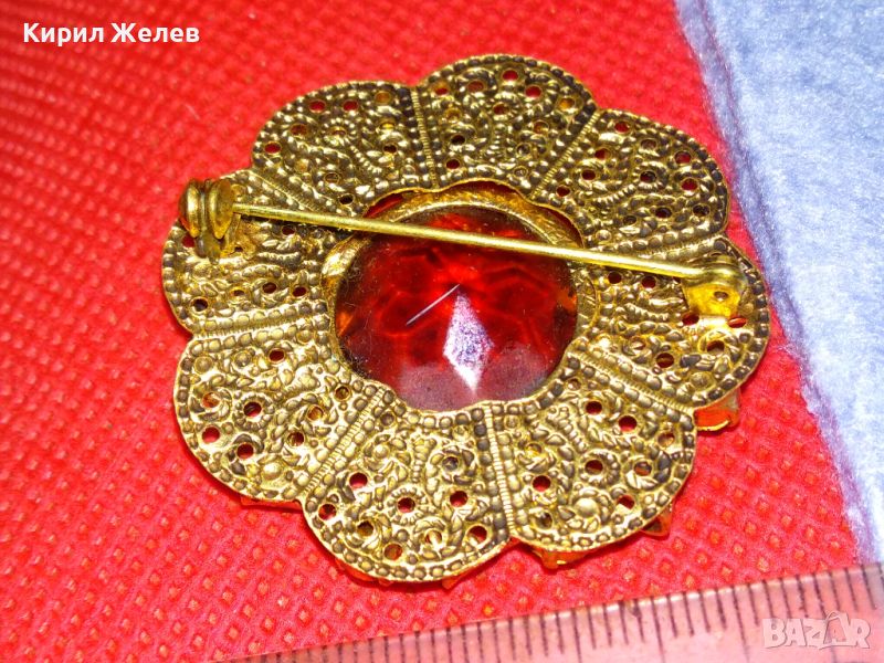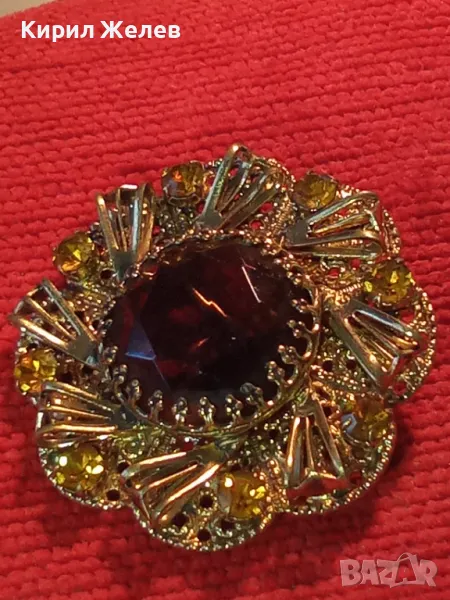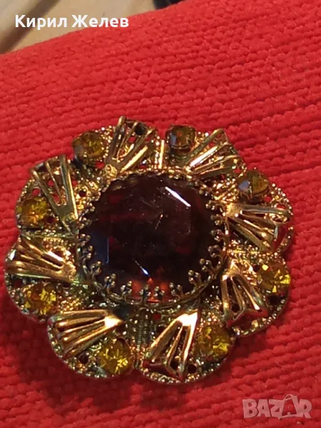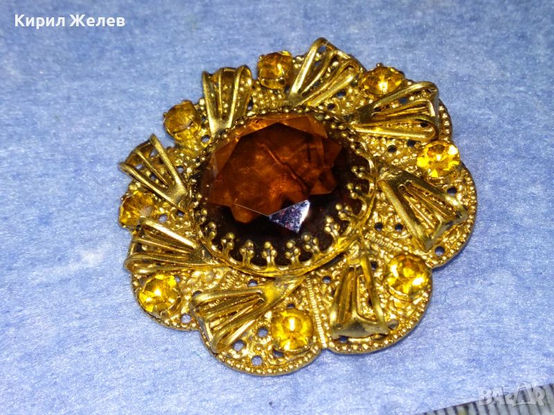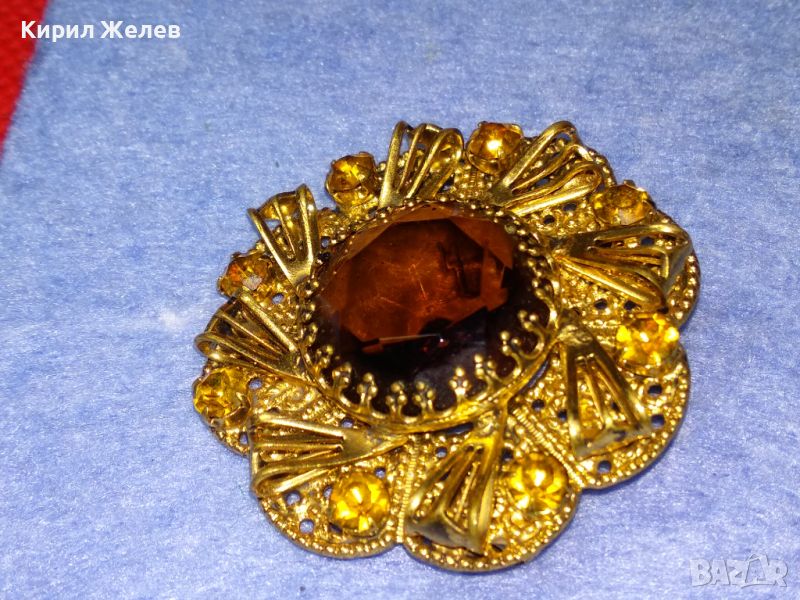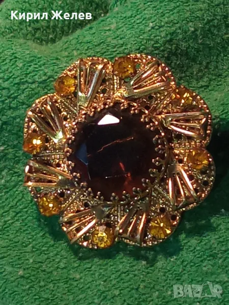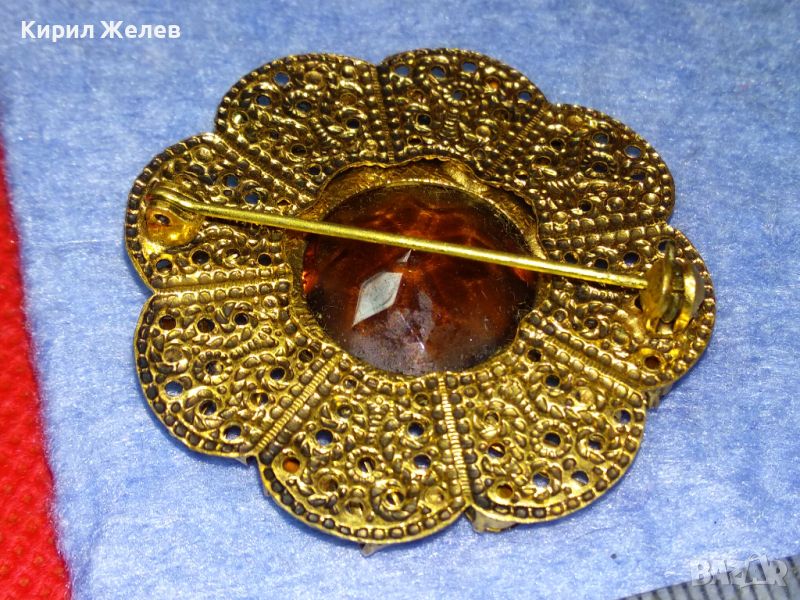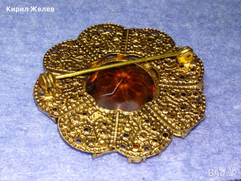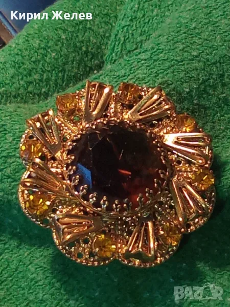 ВЕЛИКОЛЕПНА СТАРИННА СКЪПОЦЕННА ПОЗЛАТЕНА ФИЛИГРАННА МЕДНА БРОШКА ЦВЕТЕ с ОГРОМЕН ЦИТРИН 74211