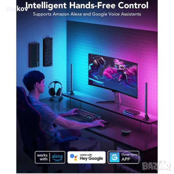 Комплект 2 RGBIC LED лампи + Govee H6601 AI Gaming Sync Box, AI светлинни ефекти, 3 HDMI