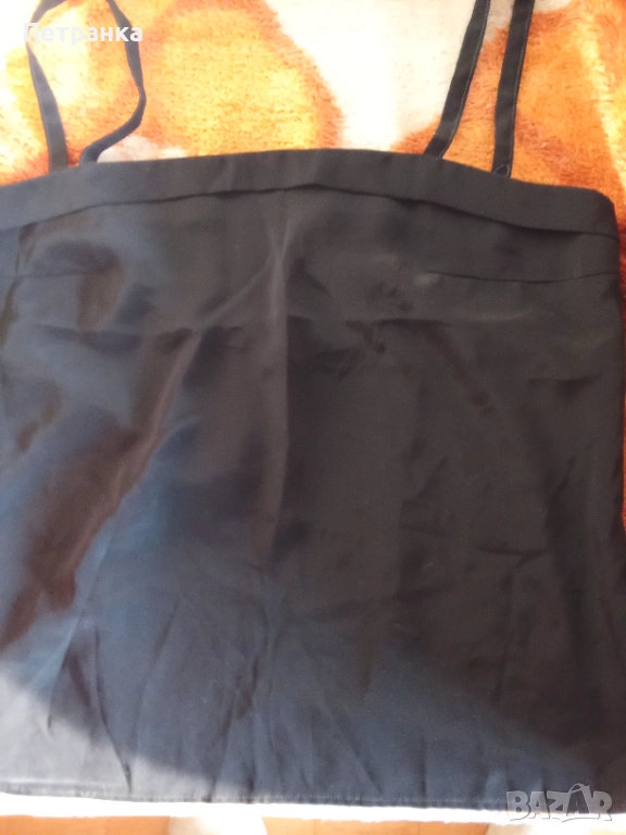 Снимка 6 - черна блуза с тънки презрамки от естествена коприна, цена 1.50 eur.