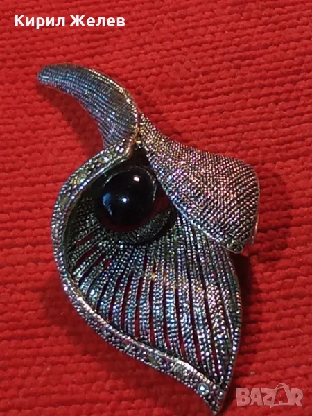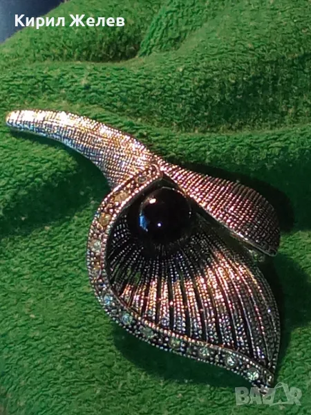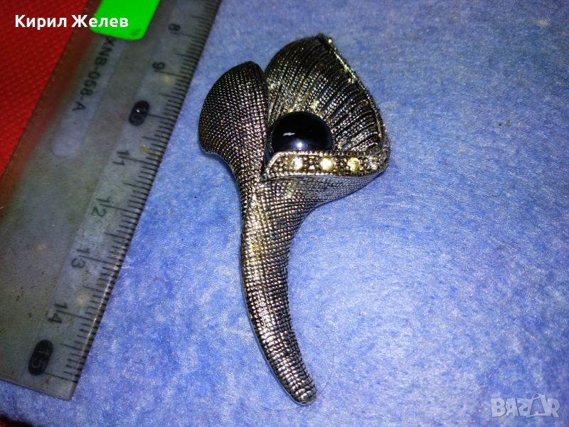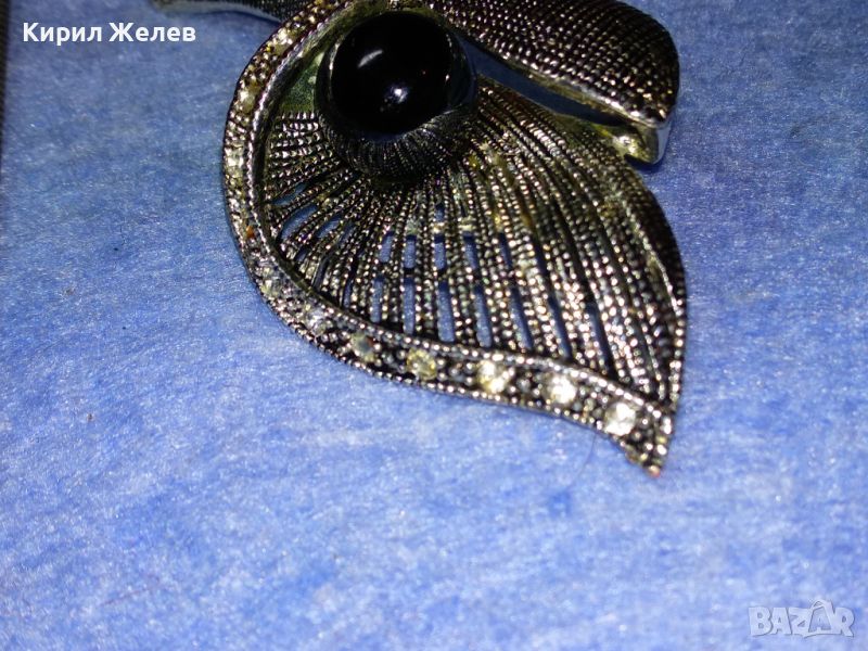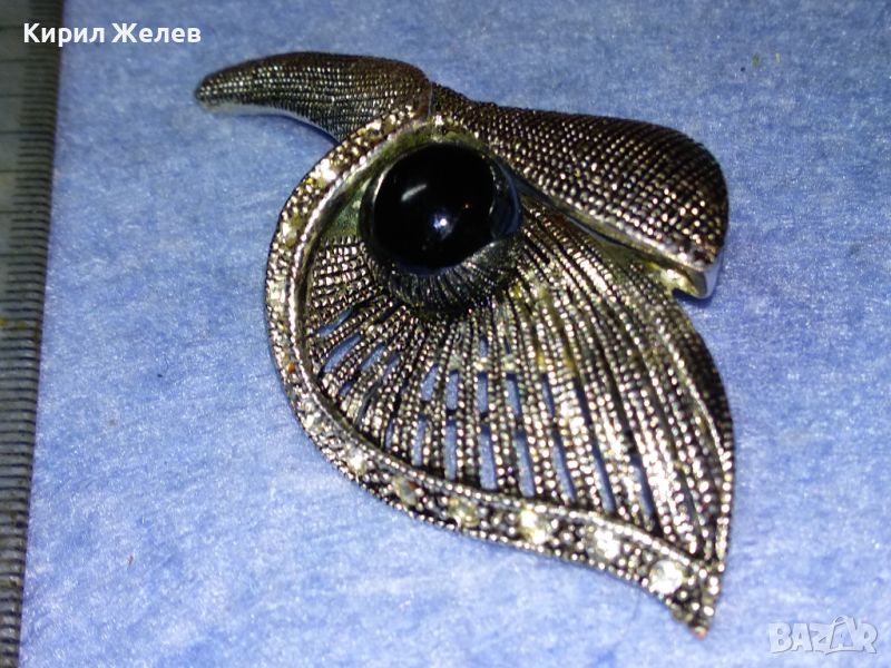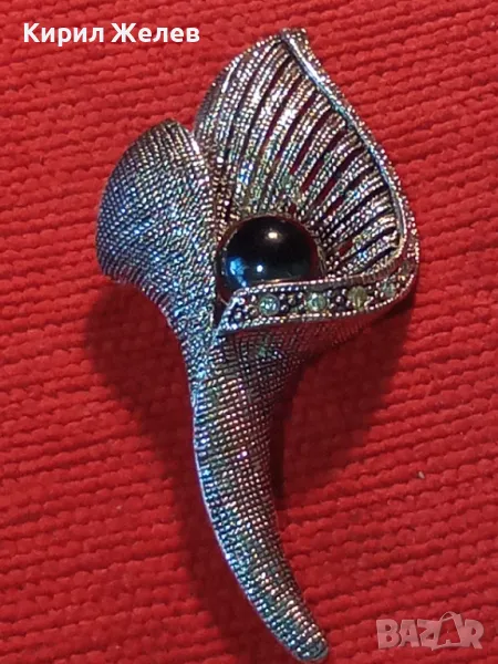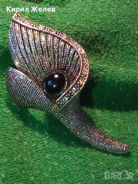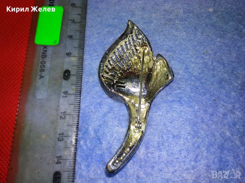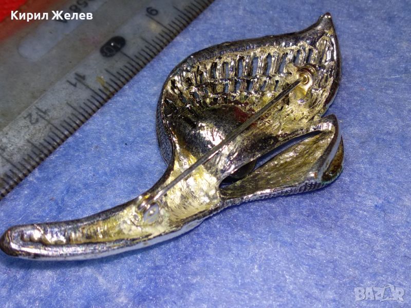 СТИЛНА ВИНТИДЖ АРТ ФЛОРАЛНА МЕДНА БРОШКА с ФАСЕТИРАНИ КРИСТАЛИ и ЛАКИРАНА БЯЛА ПОЗЛАТА 45672