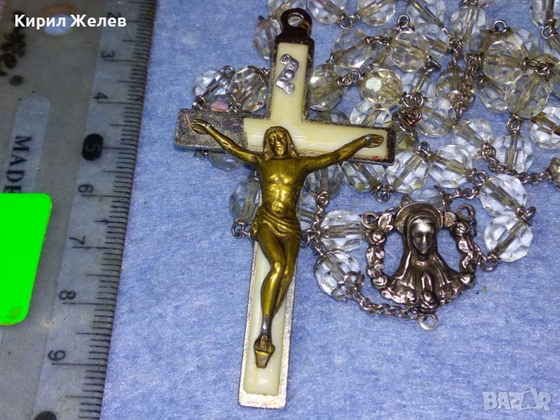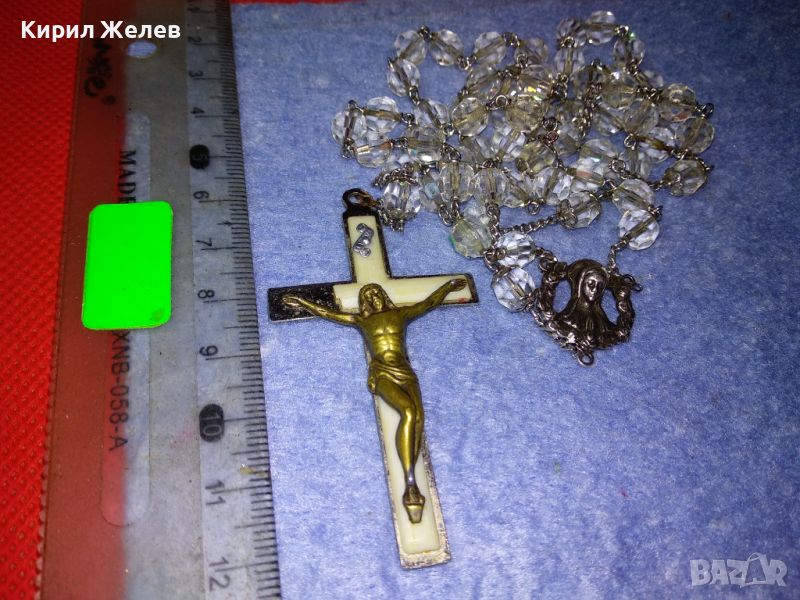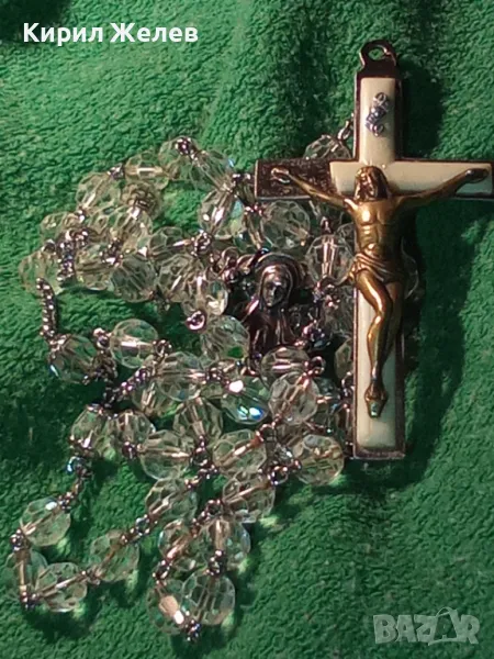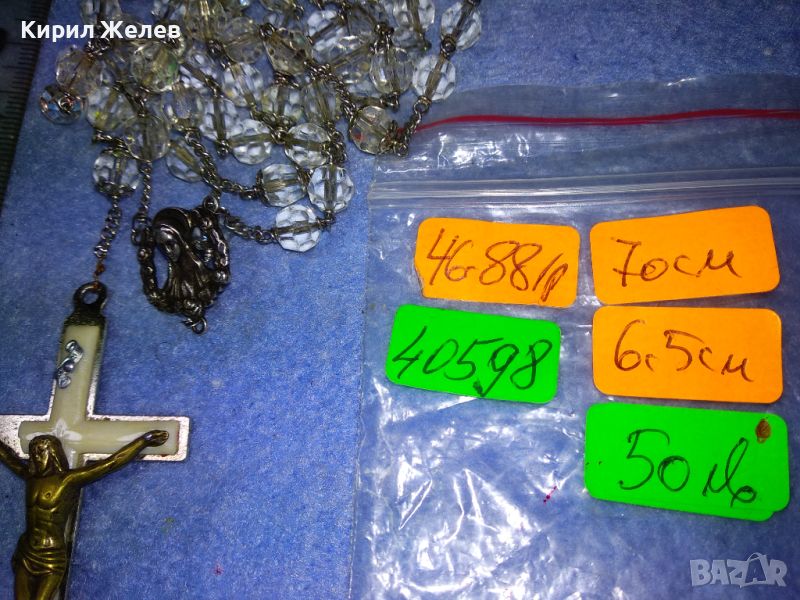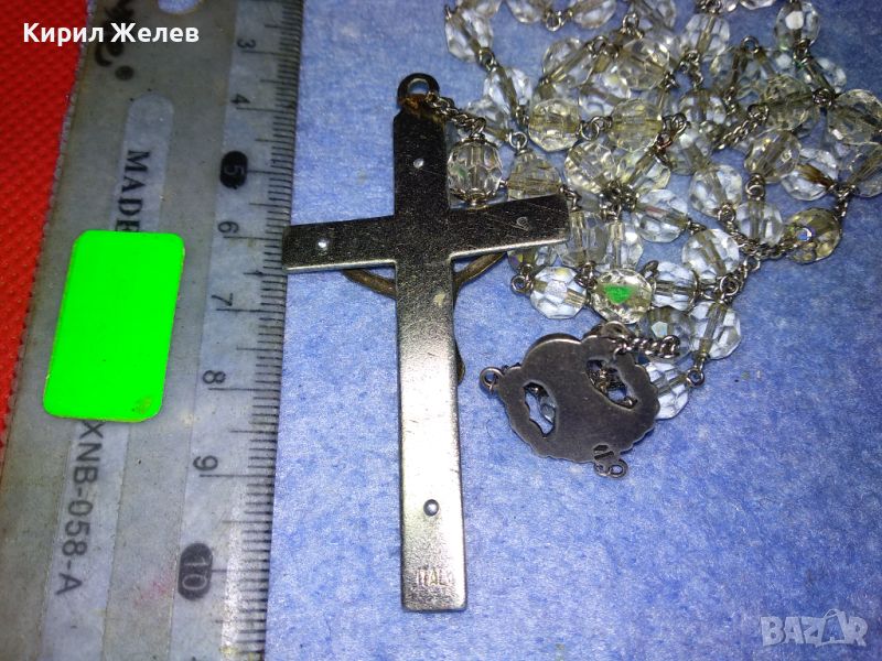 КРЪСТЪТ е от БЛАГОРОДНА СТОМАНА с ЩАМПОВАН НАДПИС ITALY, ФИГУРКАТА на ХРИСТОС ВЕРОЯТНО от БРОНЗ, СИНДЖИРЧЕТО го ЛОВИ СИЛЕН МАГНИТ, но ПРИ ТЕСТ с КИСЕЛИНА - ПРОБЕР за СРЕБРО на ЛИДИЙСКИЯ КАМЪК ДАВА РЕЗУЛТАТ ПОНЕ за ДЕБЕЛО ПОСРЕБРЯВАНЕ, а ИКОНКАТА е с 2 МАРКИРОВКИ - ЕДНАТА ПРЕДПОЛАГАМ на МАЙСТОРА, а ПОД НЕЯ за ПРОБАТА СРЕБРО - STERLING, КОЕТО отговаря на АНГЛИЙСКАТА МАРКИРОВКА за СРЕБРО 925 ПРОБА - ИКОНКАТА е от СРЕБРО. ТРАДИЦИОННА РИМОКАТОЛИЧЕСКА МОЛИТВЕНА БРОЕНИЦА ТИП ОГЪРЛИЦА с МНОГО ФАСЕТИРАНИ БЛЕСТЯЩИ КРИСТАЛИ. / Пускам голяма СЕРИЯ от СРЕБЪРНИ, медни, бронзови, и от благородна стомана БИЖУТА - украшения, кръстчета, медальони, пръстени, обеци, колиета, брошки, гривни, гердани и други най-различни. Някои са подходящи и за хенд-мейд материал. Почти всички са в ОТЛИЧНО състояние - СНИМКИТЕ ги ОНАГЛЕДЯВАТ!!! Много от тях са инкрустирани със скъпоценни или полускъпоценни камъни. Повечето са нови, има и старинни, ретро, арт, ръчна изработка, ВЪЗРОЖДЕНСКИ накити; както и МНОГО други интересни неща - имам НАД 27000 обяви в профила си - За ВСЕКИ по НЕЩО...! Изпращам по Еконт или Спиди винаги с Опция Преглед и Тест и Отстъпка-транспорт.
