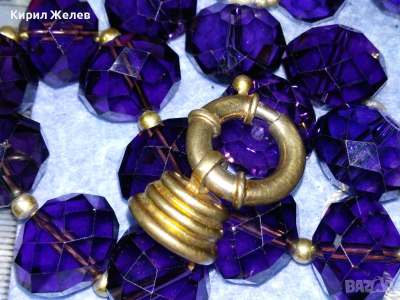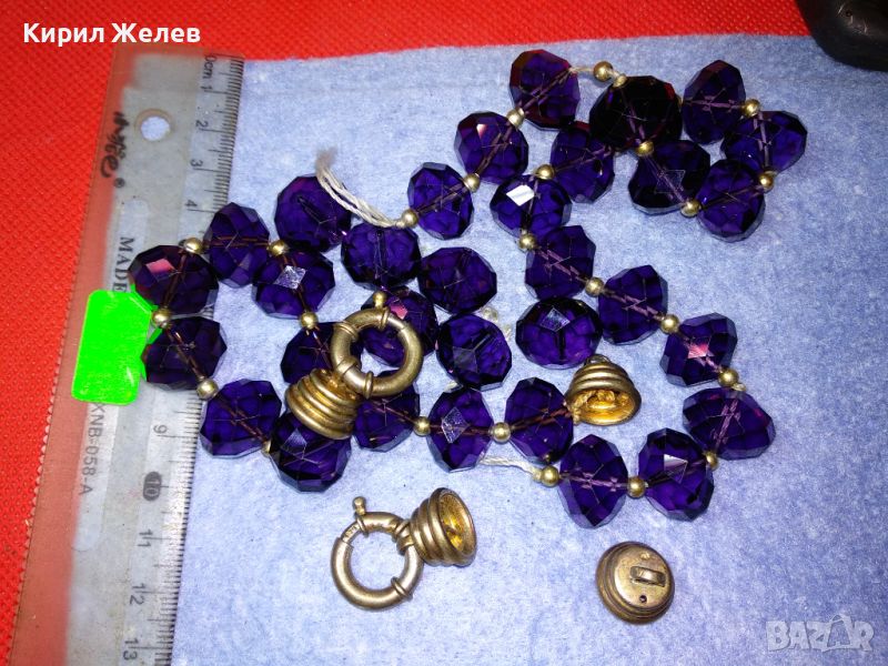 СТАРИННА ОГЪРЛИЦА от ПОСРЕБРЕНА МЕД с ПЕЧАТИ 925 и ГОЛЕМИ ФАСЕТИРАНИ ЦВЕТНИ БОХЕМСКИ КРИСТАЛИ 41872