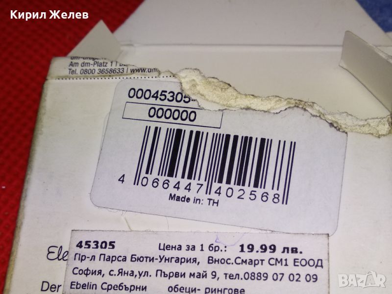 EBELIN DM Silber 925 Ohrstecker НЕЖНИ МАРКОВИ СРЕБЪРНИ ОБЕЦИ СРЕБРО 925 с ФАСЕТИРАН ЦИРКОН 43255