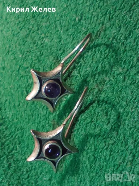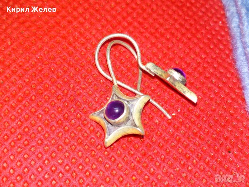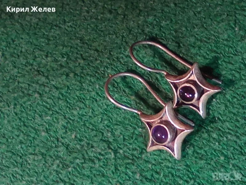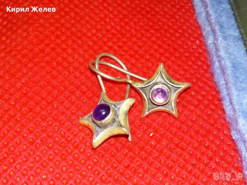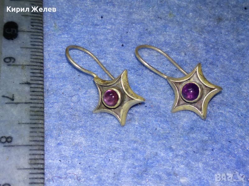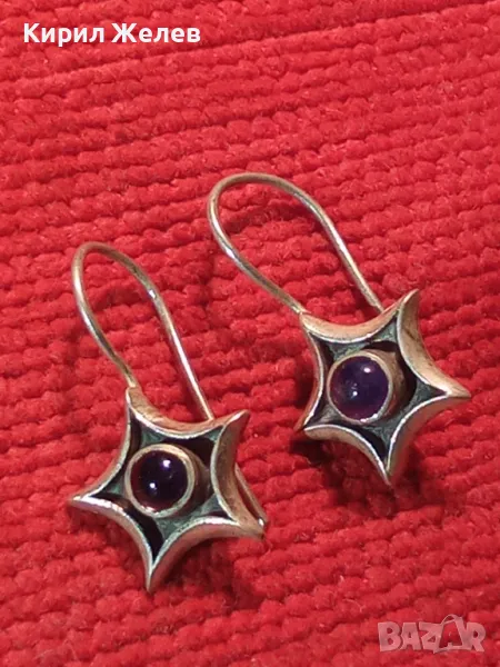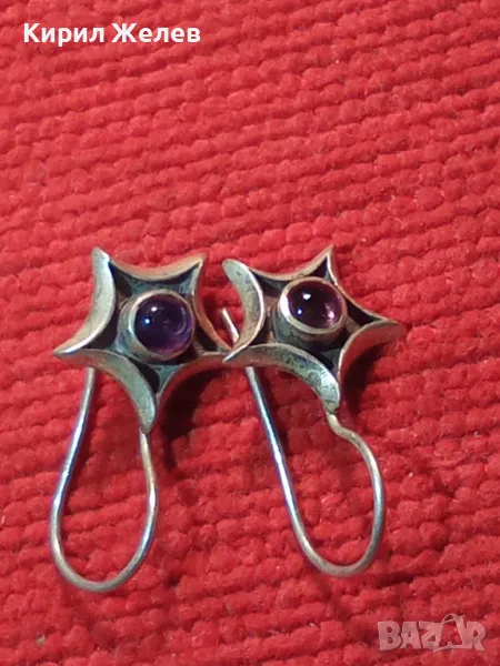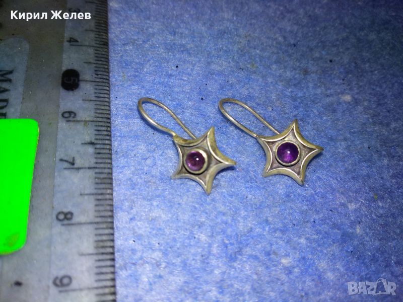 ЗВЕЗДОВИДНИ ВИНТИДЖ СКЪПОЦЕННИ СРЕБЪРНИ ОБЕЦИ СРЕБРО 925 ПРОБА с ШЛИФОВАН АМЕТИСТ 44423