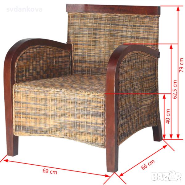 Кресло, ръчна изработка, ратан Материал: Твърдо мангово дърво + естествен ратан