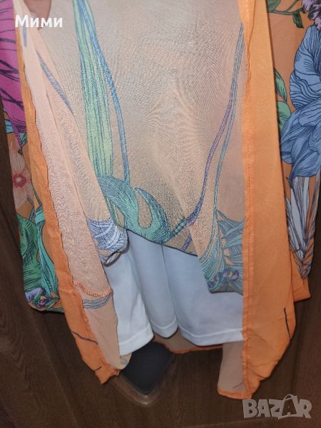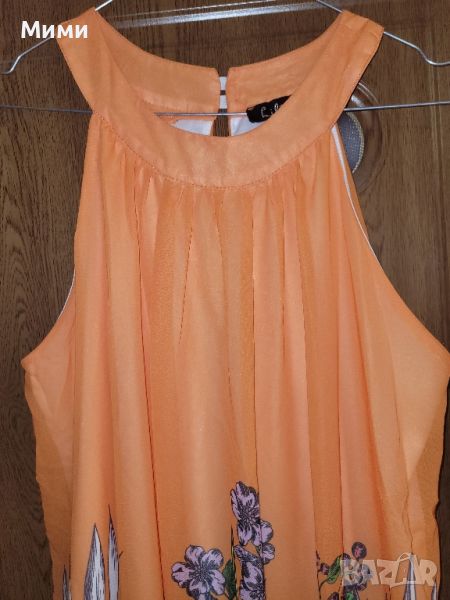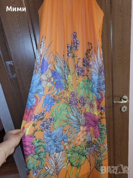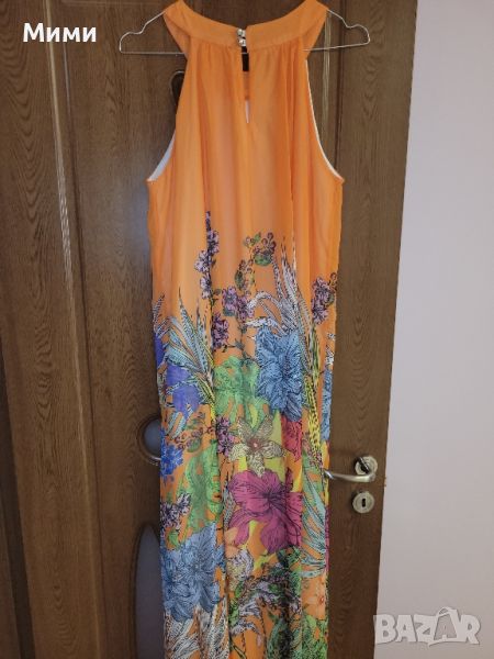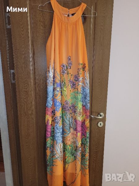 Дълга ефирна рокля в оранжев цвят. Универсален размер. Подмишници 52см, разтяга се до около 57-58см. Дължина 142см.