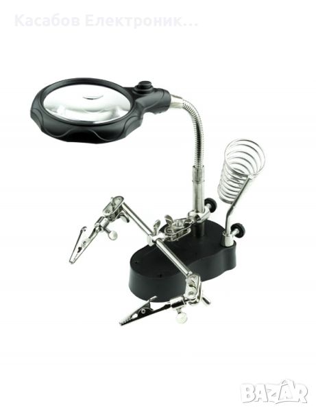 Трета ръка с държач за поялник и лупа + LED подсветка