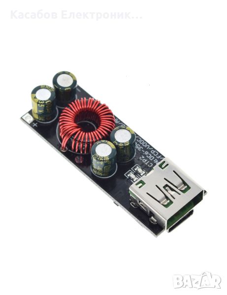 Модул за бързо зареждане с два порта за свързване на устройства: USB-C и USB-A. Поддържа най-популярните стандарти за бързо зареждане, като например: Quick Charge версия 4.0+, Apple 2.4A и Power Delivery 3.0. Работи с входно напрежение в диапазона от 6V до 32V, дава изход от 5V и автоматично увеличава напрежението, ако е необходимо. Модулът е изработен от високоефективни компоненти и осигурява стабилна и безопасна работа. Платката е оборудвана със защити на изходите: за пренапрежение и свръхток, прегряване и късо съединение.