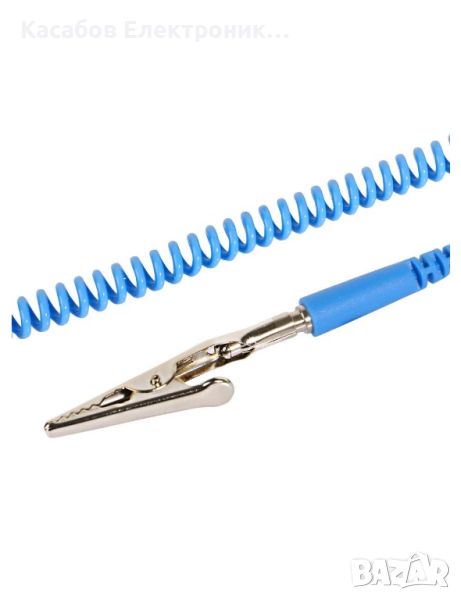 Антистатичната гривна е необходима при работа с деликатна електроника. Има вграден резистор 1MΩ, който ефективно предпазва от електростатичен разряд (ESD). Дългият 1,5м кабел е завършен с подвижна крокодилска щипка, прикрепена към бананово гнездо.