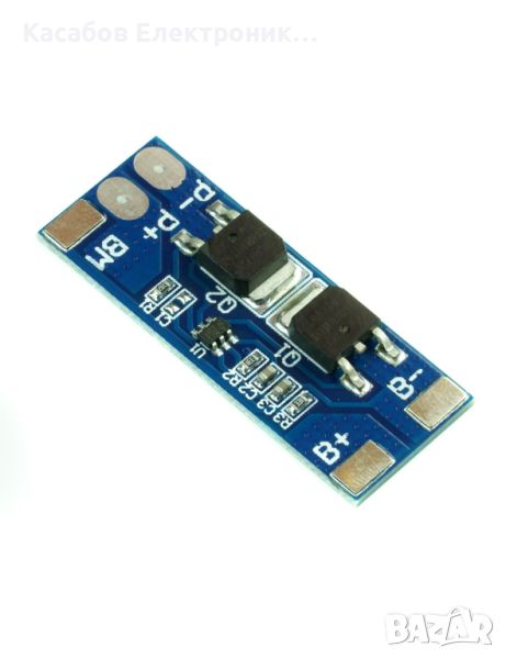 BMS 2S модул за управление на зареждането и разреждането на литиево-йонни (Li-Ion) клетки, издържащи на ток от 8А при продължителна работа. Модулът гарантира, че напрежението на клетката не пада под 2,5V - 3V и не се зарежда над 4,25V - 4,35V. Има защита от късо съединение.