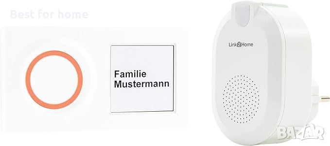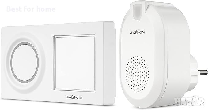 Интелигентен домашен безжичен звънец с бутон от фамилията Link2Home за интелигентна и гъвкава комуникация къща/врата. Данък и уведомление. чрез приложение (безплатно приложение Link2Home за iOS и Android).