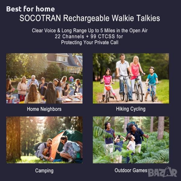 Ясен и стабилен глас👉SOCOTRAN Kids Walkie Talkies 2 пакет се доставят с най-новата версия на аксесоари за уоки-токи и висококачествени микрофони поддържат ясно и стабилно предаване и приемане на дълги разстояния, което гарантира, че можете да поддържате връзка със семейството, децата, вашите приятели без сигнал за мобилен телефон. Детски уоки токи костюм с ясен глас за къмпинг, туризъм, колоездене, офроуд, пътешествия, семейни пътувания, игри на открито и др.