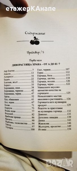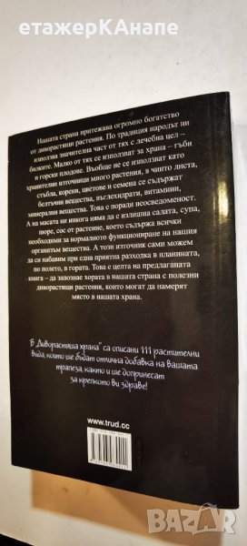 Нашата страна притежава огромно богатство от диворастящи растения. По традиция народът ни използва значителна част от тях с лечебна цел – билките. Малко от тях се използват за храна – гъби и горски плодове. Въобще не се използват като хранителни източници много растения, в чиито листа, стъбла, корени, цветове и семена се съдържат белтъчни вещества, въглехидрати, витамини, минерални вещества. Това е поради неосведоменост. А на масата ни никога няма да е излишна салата, супа, пюре, сос от растение, което съдържа всички необходими за нормалното функциониране на нашия организъм вещества. А този източник сами можем да си набавим при една приятна разходка в планината, по полето, в гората. Това е целта на предлаганата книга – да запознае хората в нашата страна с полезни диворастящи растения, които могат да намерят място в нашата храна.