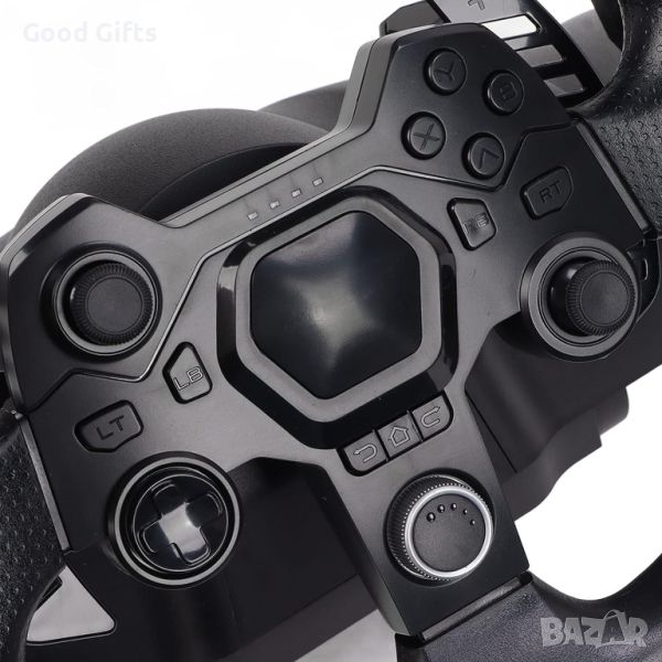 Воланът предлага 5 оси, D pad и 10 независими контролни бутона, заедно с два аналогови джойстика, които са идеални за игри като GTA. С 7 нива на регулируема чувствителност и 270 градуса въртене, можете да настроите волана точно според вашите предпочитания.