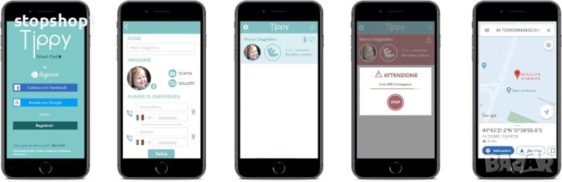 Tippy Pad е най-продаваната подложка против удължаване в Италия от 2017 г., създадена, за да помогне на родителите в ежедневието, като прави същите правителствени правни разпоредби. Tippy Pad е законово регулирана Bluetooth система, състояща се от възглавница и приложение, оборудвано със специални сензори, които могат да открият присъствието на вашето бебе в колата чрез диалог с родителското приложение чрез Bluetooth. Как работи? 1. Лесен за поставяне върху всички столчета за кола. 2. Сдвоете Tippy Pad чрез Bluetooth с приложението, изтеглено от Google Play или Applestore на вашия смартфон (внимавайте с Android 5.0 и по-нова версия и iOS 10.0 и по-нова версия) 3. Конфигурирайте профила на устройството, като запазите номерата за спешни случаи в приложението. След като детето бъде поставено на подложката, то се разпознава автоматично от устройството и след това от приложението, което може да работи и във фонов режим. 4. Когато родителите отсъстват с бебето в колата, Tippy Pad губи Bluetooth връзката с приложението и издава звуково предупреждение на вашия смартфон. 5. В този случай известяването няма да се изключи след 40 секунди, 2 SMS-а на предварително зададени номера с координатите на алармата (близо до автомобила) * Стойността на това спешно обаждане е в покупната цена на продукта. Това означава, че телефонната карта на потребителя не се докосва. **За да може устройството да отговаря на декрета, Bluetooth трябва да е активиран"