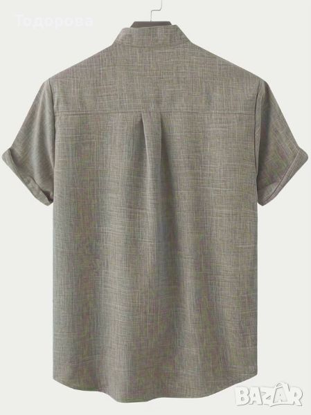 Едноцветна мъжка риза с къс ръкав и яка, ежедневна риза с копчета за лято на открито