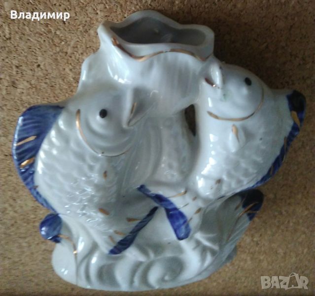3) Вазичка с две риби, височина 13 см. ширина - 12 см., отвор на вазичката 4 см./3см., в основата дължина 8.5 см., ширина - 3 см., (снимки от 13 до 18). Цена - 18 лева;