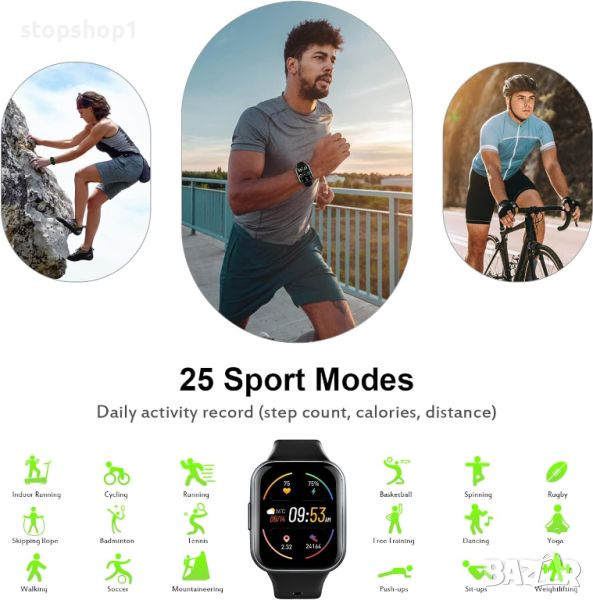 - 【25 спортни режима, проследяване на активност】 Фитнес тракерът има 25 спортни режима като бягане, колоездене, йога, бадминтон и скачане на въже. Спортният часовник записва данни за дейността през целия ден, включително крачки, разстояние, калории и пулс, така че можете да следите фитнес състоянието си в реално време. Помага ви да коригирате правилната фитнес програма, за да станете най-добрата версия на себе си.