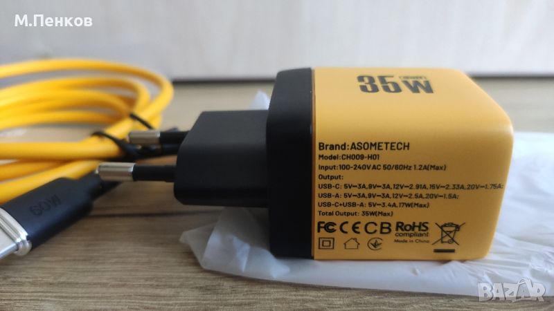 ASOMETECH 35W GaN зарядно LED дисплей + 1м. кабел type-c → Обява 46245052