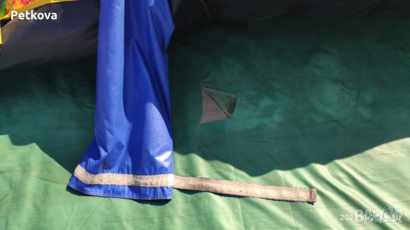Батута е производство и внос от Китай. Със паспорт, използван, четири годишен. Батута е ползван предимно лятото, по два месеца - вечер. Съхранява се на сухо и проветриво място. Размери: 8/10м. Използван, но много запазен. Много здрав винил.
