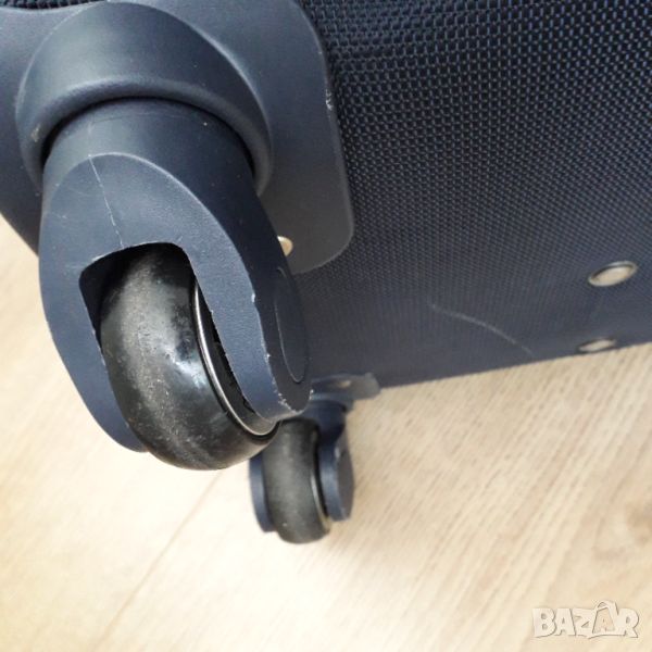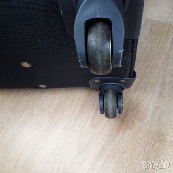Голям куфар за пътуване с цип и колелца. Размери 70/44/26 см. Може да се заключва и с код. Ползван е един път. Няма никакви дефекти и забележки. Снимала съм и колелата, за да се вижда състоянието им.