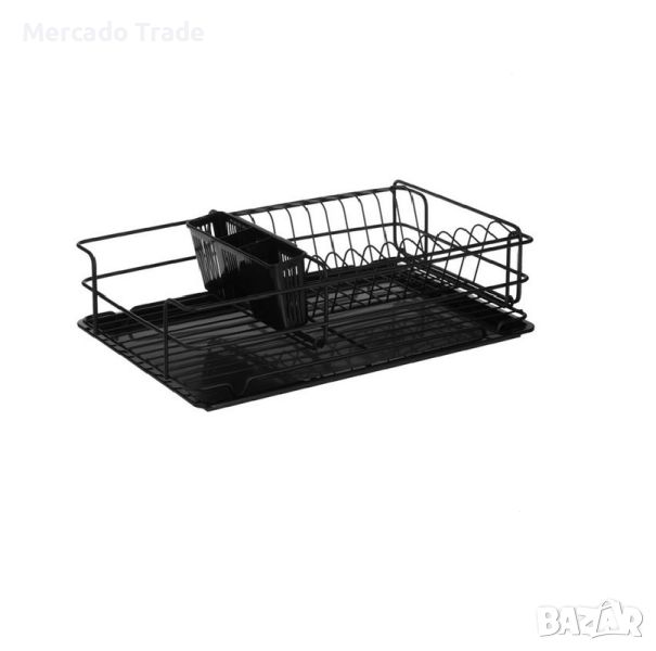 Метален сушилник Mercado Trade, С подложка, За кухня, Две нива с черна метална рамка и черна пластмасова тава за събиране на вода. Вторият етаж с висяща поставка за прибори може да се постави където пожелаете, той е разглобяем и плъзгащ се, за да отговори на всяка нужда от употреба.