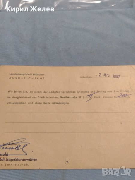 Стара пощенска картичка с печати 1957г. Мюнхен Германия за КОЛЕКЦИЯ ДЕКОРАЦИЯ 45989 → Обява 46248028