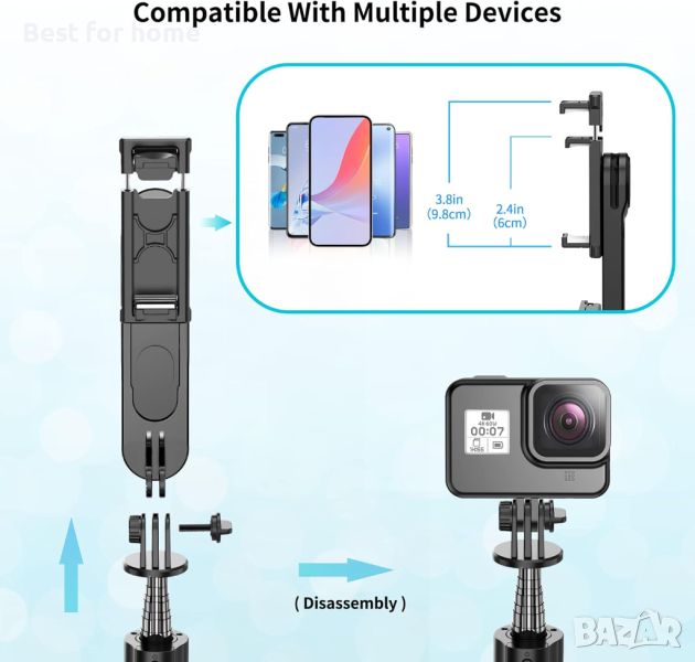 【Държач за телефон с регулируемо въртене на 360°】: Selfie Stick на SelfieShow е проектиран с 225° въртене на врата и 360° въртене на главата, можете да изберете хоризонтален или вертикален режим на снимка и може да се регулира от различни ъгли, което ви позволява да получавате снимките, които искате с всеки ъгъл, който искате. Широчината на захващане на телефона е 2,5-3,9"(6,4-10,0 см), пасва на повечето телефони с iOS/Android. Перфектен за видеоконференции, TikTok, селфита, партита, групови снимки, сватби, пътувания и други събития на закрито и на открито .