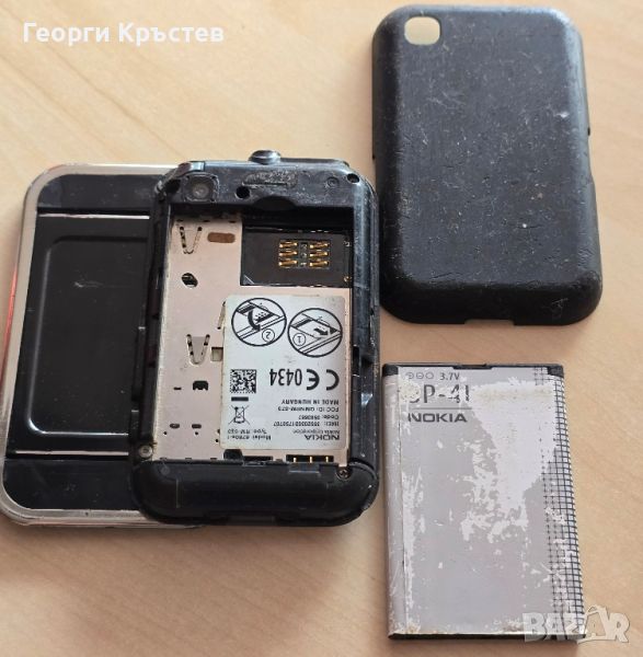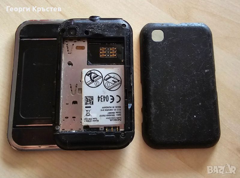 Телефона се включва и работи, тестван с А1, нямам друга за проба, зарежда си батерията, която не е пробвана, но би трябвало да е ОК, клавиатура, слушалка, микрофон, всичко е ОК, камерата има лек проблем, някак размазано се вижда, лош външен вид, капака пада, крачетата са счупени, джойстика от панела го няма, но работи идеално, всичко това се оправя, със смяна на панел, няма я приставката за СИМ, има БГ меню, активен и стегнат страничен слайд, без зарядно.