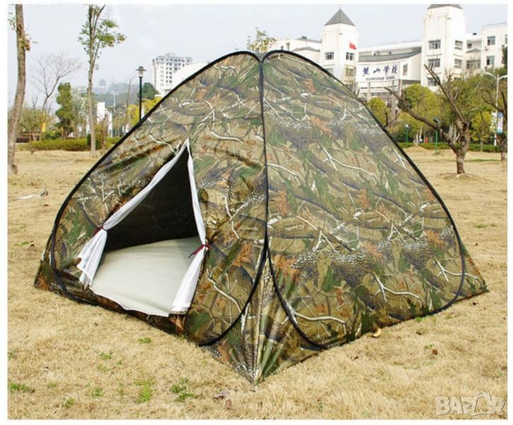 Качествена саморазгъваща се камуфлажна палатка която сама се разгъва мигновенно след изваждането и от калъфа.