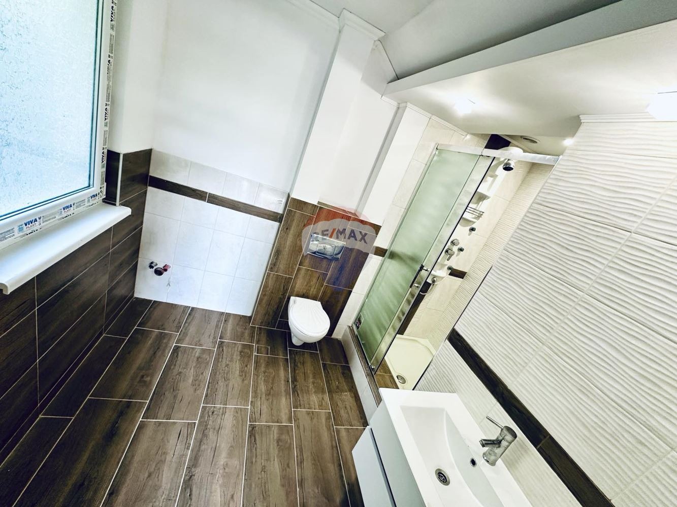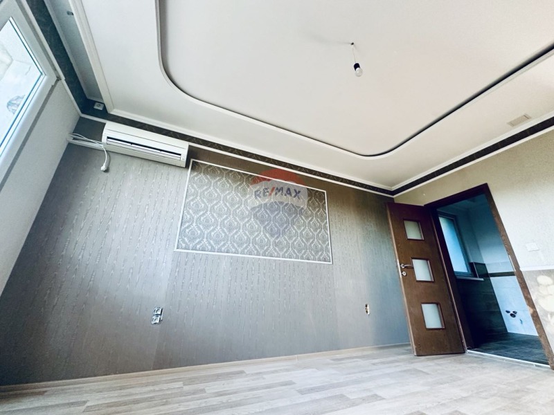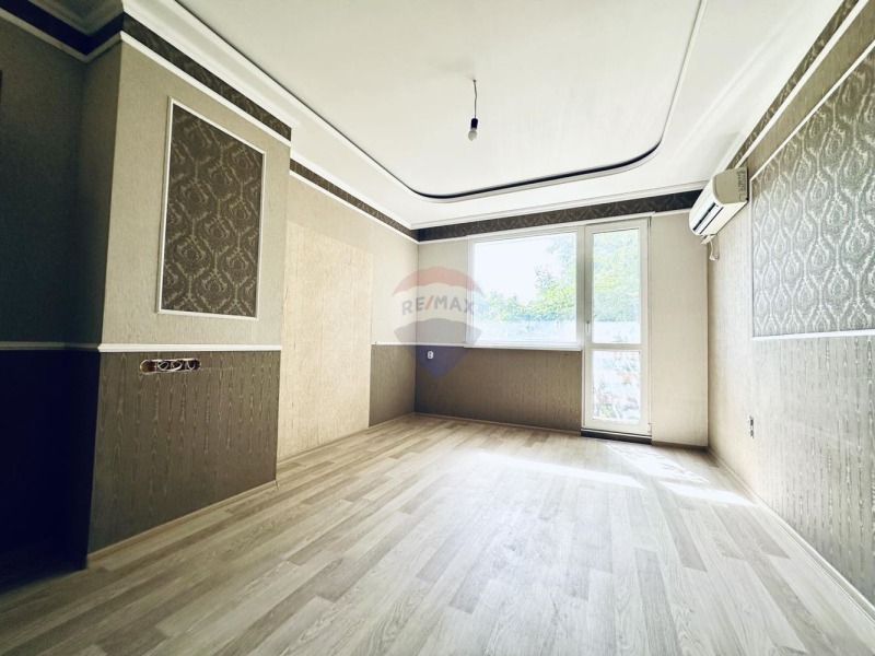 Изцяло сменени са ВиК и ЕЛ инсталации. Стените са на шпакловка и гипсокартон, боядисани; направени са окачени тавани. Частично сложени тапети и изработена декоративна секция във всекидневната от гипсокартон. Използвана e саморазливна замазка с цел изравняване на различни нива. Навсякъде e монтирана нова PVC дограма с двоен стъклопакет. Сложени са дървени врати с възможност да ги декорира с матово стъкло. Осветлението на апартамента е направено с използване на множество монтирани модерни осветителни тела. Имa нов ламинат и завършващи первази, както на пода така и в ъглите на всички тавани. В санитарните помещения са сменени канали, сложена е хидроизолация и използвани три вида гранитогрес. Оборудването в банята е до готовност за ползване с опция да се монтира и вана. Има и окабеляване, за да се сложи и телевизор на стената. В гостната има баня и тоалетна с инсталирана фотоклетка.