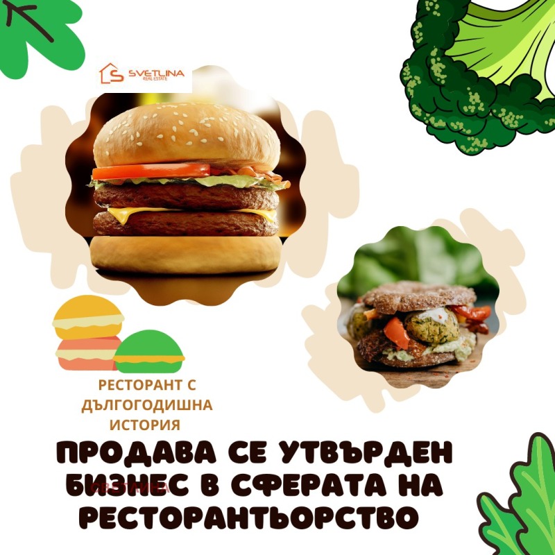 Продава се утвърден БИЗНЕС в сферата на ресторантьорство веган ресторант с дългогодишна история и отлична репутация. Дейността му се извършва в помещение ПОД НАЕМ на ЦЕНТРАЛНА СТОЛИЧНА локация. Често посещаван от популярни личности, което допринася за отличната му репутация и присъствие.