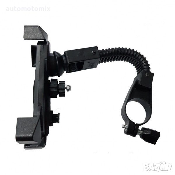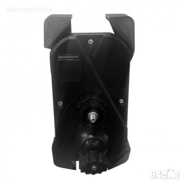Тази поставка за телефон и GPS, е подходяща за велосипеди, мотопеди, мотори, АТВ, скутери и др. Здрава скоба за стабилно монтиране на кормилото с диаметър между 18 мм и 30 мм. Четирите крачета за подвижни и служат за поставяне на различни размери телефони. Специалното заключване на крачетата не позволява телефонът да се изхлузи от стойката по време на каране. Бърза и лесна инсталация без нужда от инструменти. Регулируемият държач ви позволява да въртите устройството си на 360° и под различни ъгли.